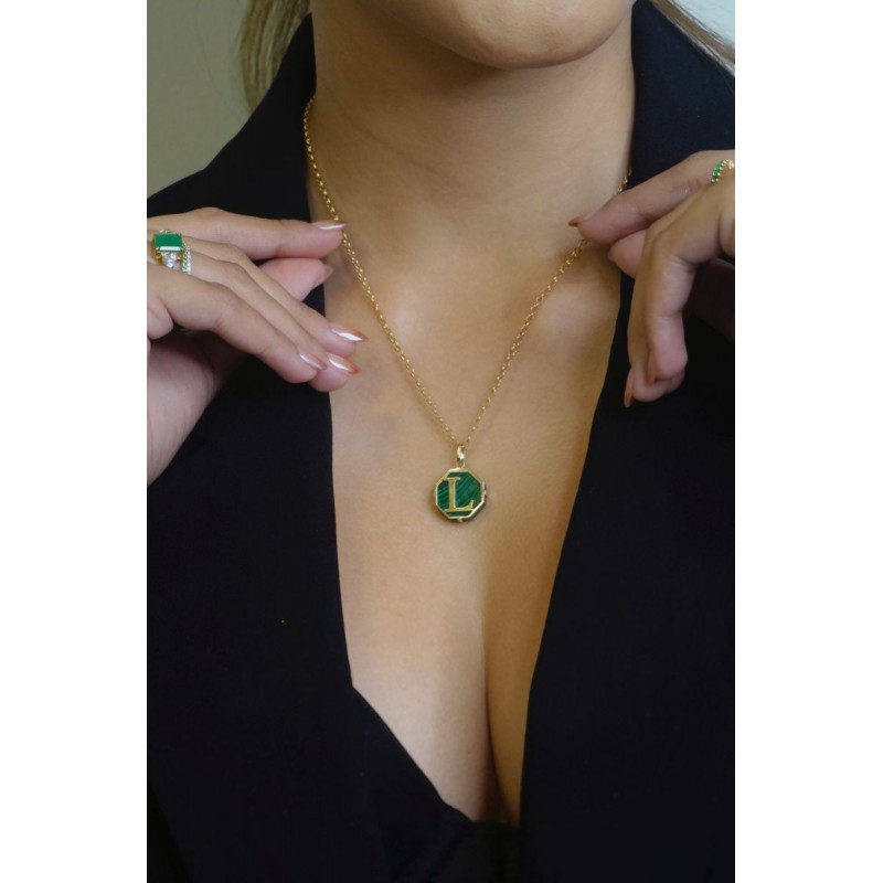 Design: pingente de letra em pedra malaquita