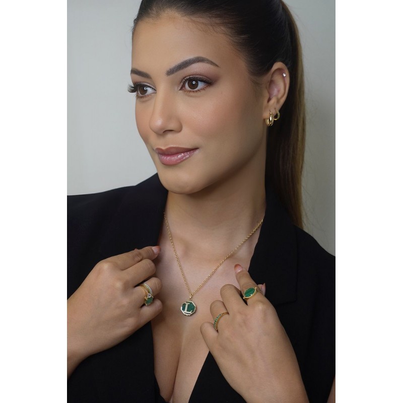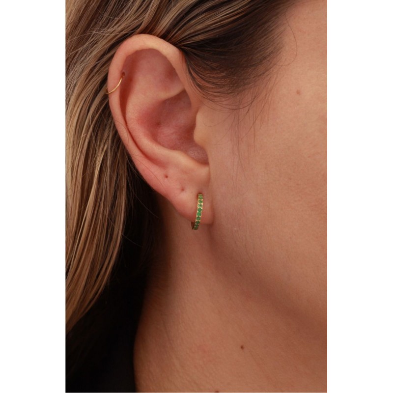 • Design: argola em formato redondo com esmeraldas