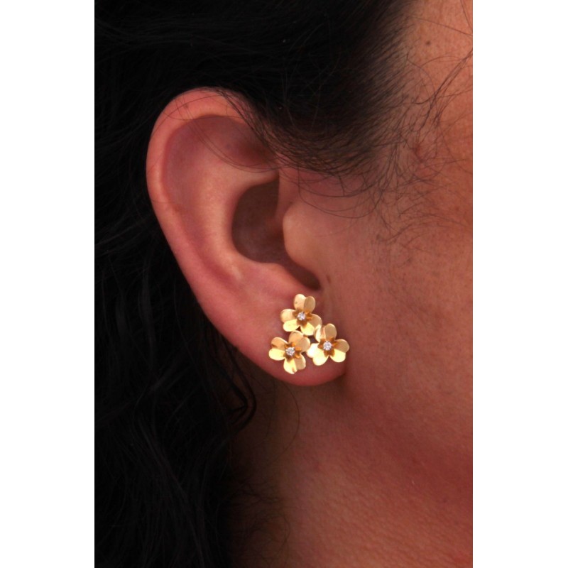 Brinco com flores cravejadas com diamante.